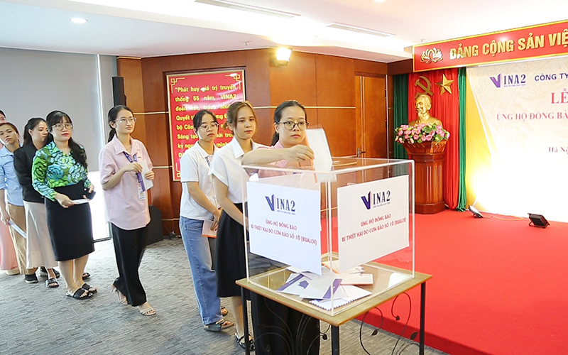 Ngày 8/10/2025 Công ty Cổ phần Đầu tư và Xây dựng VINA2 tổ chức Lễ phát động ủng hộ đồng bào chịu thiệt hại sau cơn bão số 10 và bị ảnh hưởng bởi hoàn lưu bão số 11 vừa xảy ra. Trong vòng 01 tháng, người dân tại các tỉnh Bắc Bộ và Bắc Trung Bộ liên tiếp bị gánh chịu nhiều cơn bão liên tiếp và mưa lũ kéo dài. Bão chồng bão, mất mát và đau thương. Trước những khó khăn mà người dân vũng lũ đang phải gánh chịu, HĐQT, Ban Tổng Giám đốc và toàn thể CBCNV trong hệ thống VINA2 cùng hướng về đồng bào bị ảnh hưởng bão lũ với mong muốn góp một phần nhỏ bé để giảm bớt khó khăn và tạo sinh kế cho người dân sau bão lũ.